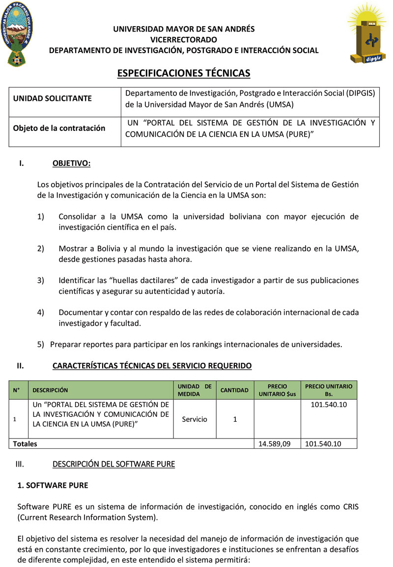 SOLICITUD DE EXPRESIONES DE INTERÉS (DIPGIS-UMSA)